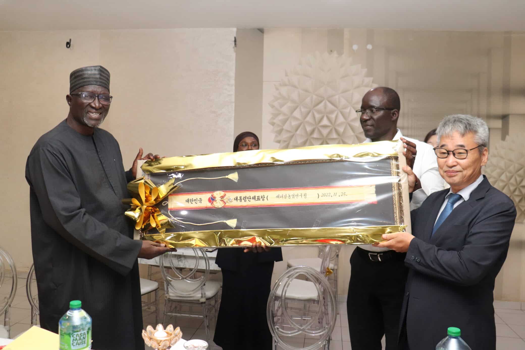 Autour de cet événement empreint d’émotion et de reconnaissance, les plus hautes autorités de l’ISRA se sont mobilisées, avec la présence du Directeur Général, de son staff ainsi que du Président du Conseil d’Administration. Bien plus qu’un simple au revoir, la rencontre a été l’occasion de revisiter un parcours marqué par des avancées concrètes dans un esprit de coopération exemplaire entre le Sénégal et la République de Corée du Sud. Ce qui avait valu à l’ISRA la distinction de « meilleur partenaire ODA (Official Development Assistance) de la République de Corée pour l’année 2022 ». Une reconnaissance prestigieuse, attribuée par le Président de la République de Corée du Sud, qui vient saluer la qualité du partenariat et les résultats obtenus dans l’innovation agricole et le transfert de compétences.